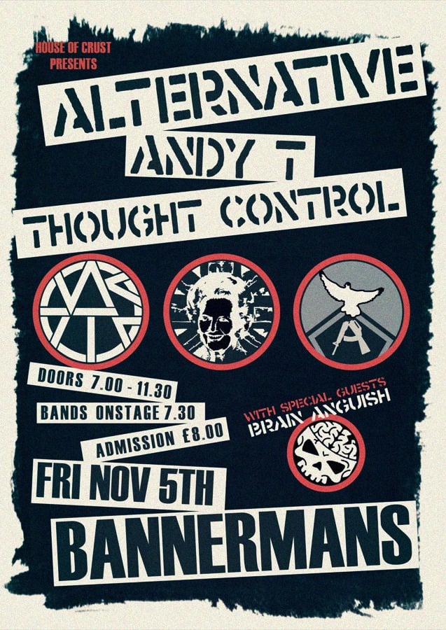 ALTERNATIVE, ANDY T, Thought Control and Brain Anguish play at Bannermans in Edinburgh tonight (5 November).