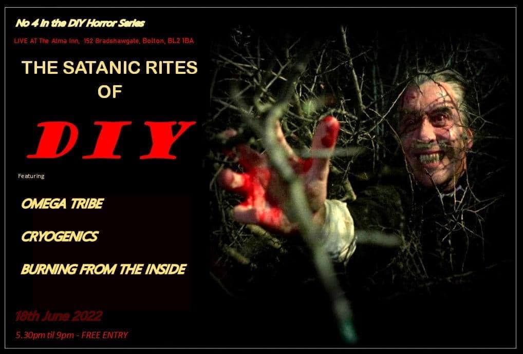 OMEGA TRIBE ARE joined by Cryogenics and Burning From The Inside for a free early-doors ‘Satanic Rites of DIY’ gig in Bolton on Saturday 18 June.
