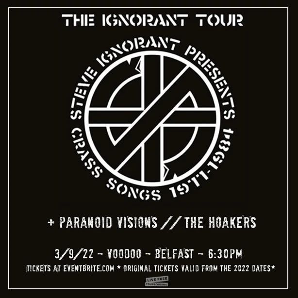 STEVE IGNORANT’S TOUR of ‘Crass Songs 1977-1984’ continues this weekend with dates in Dublin (Friday 2 September) and Belfast (Saturday 3 September).
