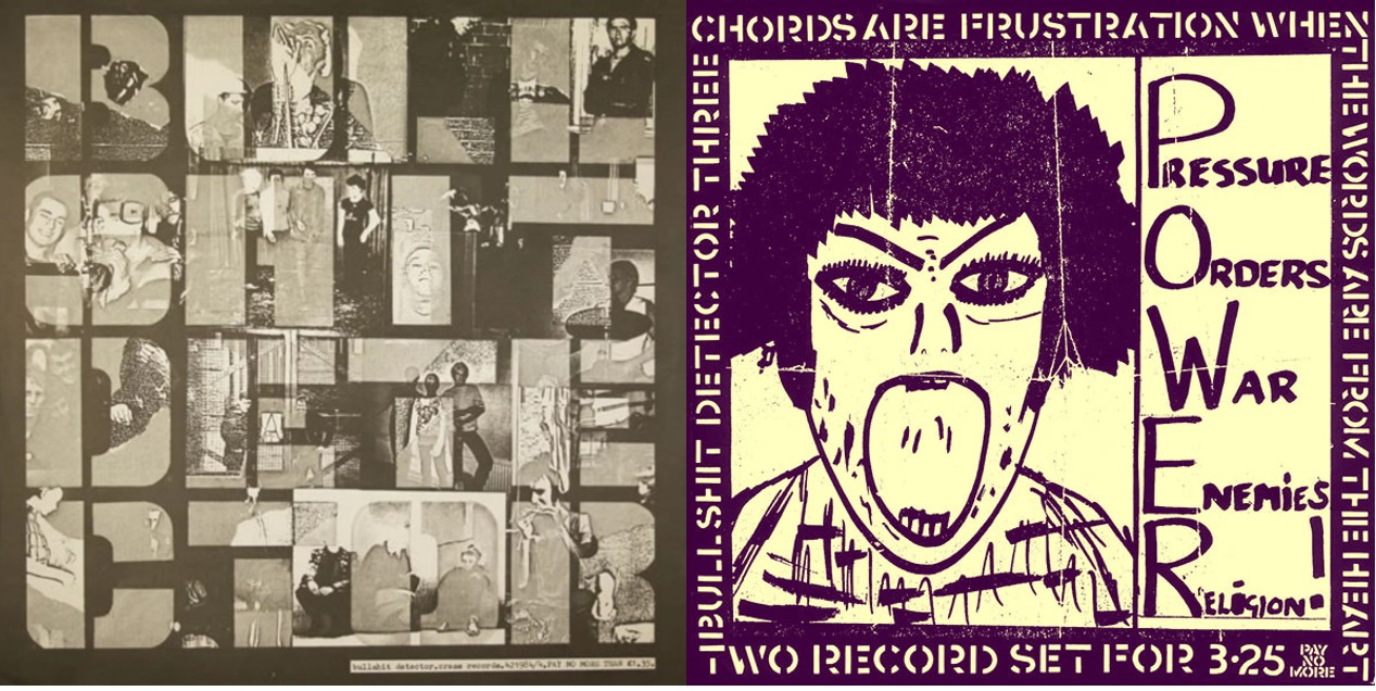 ‘Bullshit Detector’ was the name of a series of compilation LPs put together by the anarcho-punk band Crass and released on their own label. Three editions were released between 1980 and 1984, consisting of demo tapes, rough recordings and artwork that had been sent to the band. The sound quality of the ‘Bullshit Detector’ series was mixed and often basic, or even poor, as Crass would master the tapes directly to record without any additional production or enhancement. For Crass, the expectation of a polished performance was missing the point.