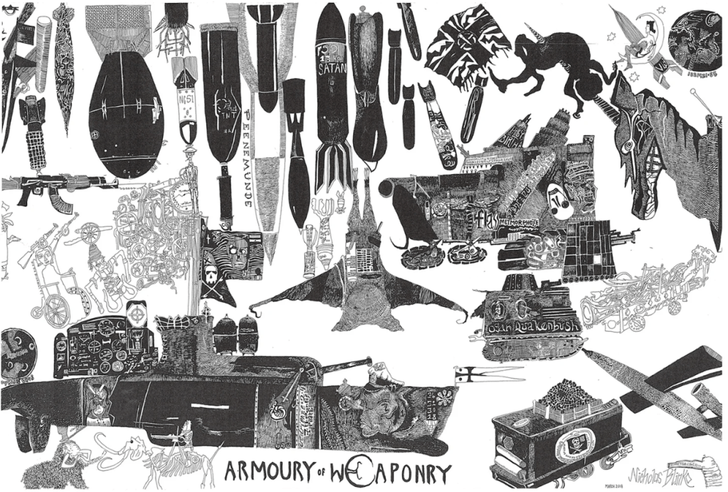 A COLLECTION OF four poster-size art prints by Nick Blinko (Rudimentary Peni) has been produced by the Amorphous Press wing of Amorphous Pieces.