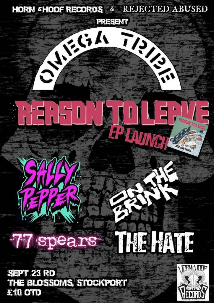 Reason to Leave are launching their new EP at the gig, and share the bill with On The Brink, The Hate, Sally Pepper and 77 Spears.