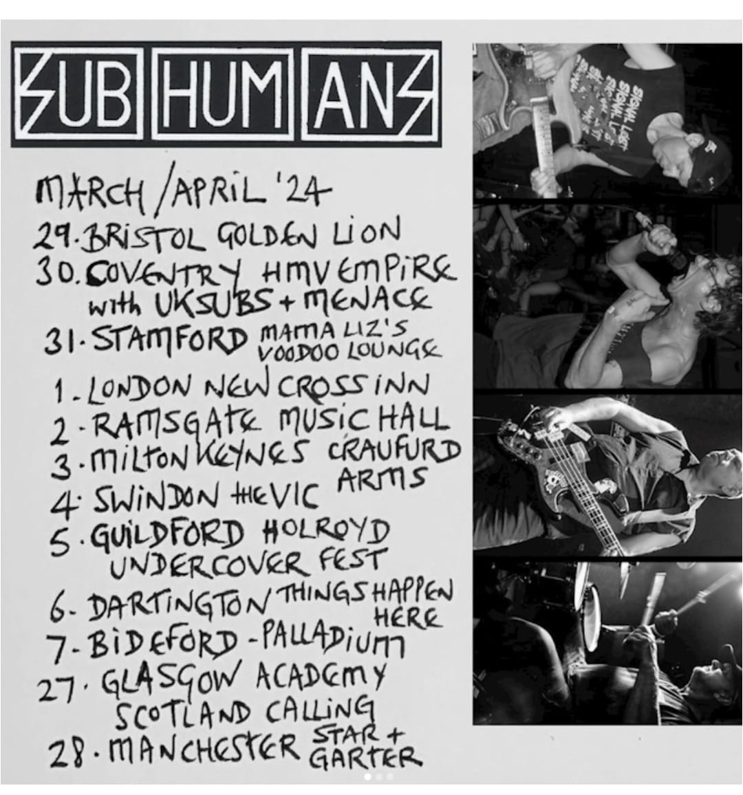 SUBHUMANS KEEP UP their intensive live schedule with a series of dates across the UK beginning later this month and running to the end of April.