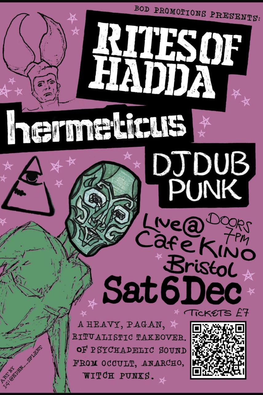 RITES OF HADDA and Hermeticus will be backed by DJ Dub Punk at a Bristol gig on 6 December – for a show at which “hundreds of anarcho-punk images” will be digitally projected, to deliver a “psychedelic immersive anarcho-punk experience not to be missed”.
