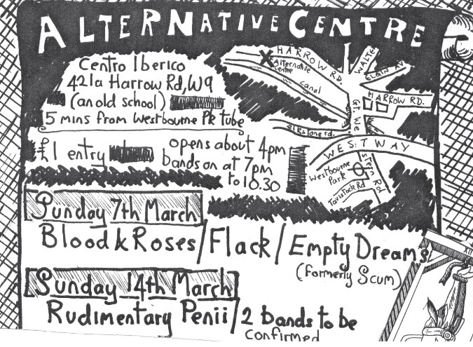 For six months running from March to August 1982, the ‘Alternative Centre’ at Centro Iberico on Sundays is indeed the successor to one part of the Wapping Autonomy Centre: in the guise of the gigs. Even then, the existing residents are running their own schedule of events at the venue, independent of that. So there was always these two different strands—we just have better documentation of the punk component. The Whitehouse gigs, for example, are nothing to do with the Alternative Centre. They’re negotiated by Jordi Valls, a Catalan artist and manager to Whitehouse, directly with the still-present Spanish residents.